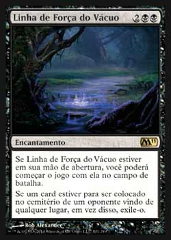 | Nome em Inglês: | Leyline of the Void | | Nome em Português: | Linha de Força do Vácuo | | Custo de Mana: |    | | Tipo: | Encantamento | | Texto: | Se Leyline of the Void estiver em sua mão inicial, você pode começar o jogo com Leyline of the Void no Campo de Batalha. Se um card fosse ser colocado no cemitério de um oponente, Exile-o ao invés. | | Série: |  | | Outras: | | | Raridade: | Raro | | Card: | 101 |