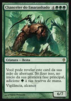 | Nome em Inglês: | Chancellor of the Tangle | | Nome em Português: | Chanceler do Emaranhado | | Custo de Mana: |     | | Tipo: | Criatura - Besta | | Texto: | Você pode revelar este card de sua mão inicial. Se o fizer, no início de sua Primeira Fase Principal, adiciona a sua reserva de mana. Vigilância, Alcance. | | P/T: | 6/7 | | Série: |  | | Raridade: | Raro | | Card: | 106 |