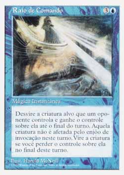 | Nome em Inglês: | Ray of Command | | Nome em Português: | Raio de Comando | | Custo de Mana: |   | | Tipo: | Mágica Instantânea | | Texto: | Desvire a criatura alvo que um oponente controla e você ganha o controle daquela criatura até o final do turno. Aquela criatura tem Ímpeto até o final do turno. Quando você perder o controle daquela criatura, vire-a. | | Série: |  | | Outras: | | | Raridade: | Comum | | Card: | 114 |