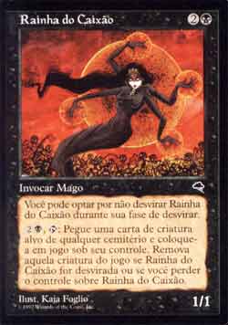 | Nome em Inglês: | Coffin Queen | | Nome em Português: | Rainha do Caixão | | Custo de Mana: |   | | Tipo: | Criatura - Zumbi Mago | | Texto: | Você pode escolher não desvirar Coffin Queen durante sua Etapa de Desvirar.