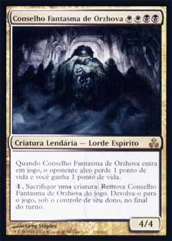 | Nome em Inglês: | Ghost Council of Orzhova | | Nome em Português: | Conselho Fantasma de Orzhova | | Custo de Mana: |     | | Tipo: | Criatura Lendária - Espírito | | Texto: | Quando Ghost Council of Orzhova entrar no Campo de Batalha, o oponente alvo perde 1 ponto de vida e você ganha 1 ponto de vida.