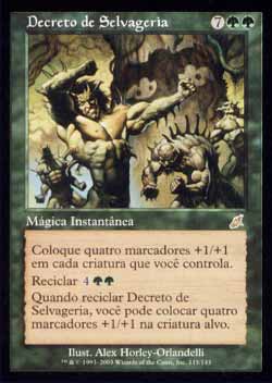 | Nome em Inglês: | Decree of Savagery | | Nome em Português: | Decreto de Selvageria | | Custo de Mana: |    | | Tipo: | Mágica Instantânea | | Texto: | Coloque quatro marcadores +1/+1 em cada criatura que você controla. Reciclar   . Quando você Reciclar Decree of Savagery, você pode colocar quatro marcadores +1/+1 na criatura alvo. | | Série: |  | | Raridade: | Raro | | Card: | 115 |