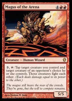 | Nome em Inglês: | Magus of the Arena | | Nome em Português: | Sem nome em Português | | Custo de Mana: |    | | Tipo: | Criatura - Humano Mago | | Texto: | , : Vire uma criatura alvo que você controla e uma criatura alvo que um oponente controla e à escolha dele próprio. Aquelas criaturas Lutam uma contra a outra. | | P/T: | 5/5 | | Série: |  | | Outras: | | | Raridade: | Raro | | Card: | 115 |
