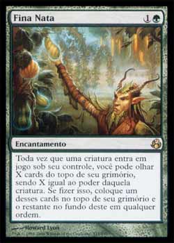 | Nome em Inglês: | Cream of the Crop | | Nome em Português: | Fina Nata | | Custo de Mana: |   | | Tipo: | Encantamento | | Texto: | Toda vez que uma criatura entrar no Campo de Batalha sob seu controle, você pode olhar os X cards do topo de seu grimório, onde X é o poder daquela criatura. Se o fizer, coloque um daqueles cards no topo de seu grimório e o restante no fundo do seu grimório em qualquer ordem. | | Série: |  | | Raridade: | Raro | | Card: | 117 |