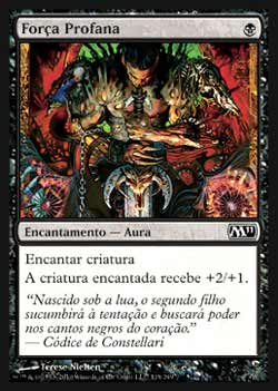 | Nome em Inglês: | Unholy Strength | | Nome em Português: | Força Profana | | Custo de Mana: |  | | Tipo: | Encantamento - Aura | | Texto: | Encantar criatura. A criatura encantada ganha +2/+1. | | Série: |  | | Outras: | | | Raridade: | Comum | | Card: | 119 |