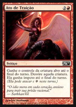 | Nome em Inglês: | Act of Treason | | Nome em Português: | Ato de Traição | | Custo de Mana: |   | | Tipo: | Feitiço | | Texto: | Ganhe o controle da criatura alvo até o final do turno. Desvire aquela criatura. Aquela criatura tem Ímpeto até o final do turno. | | Série: |  | | Outras: | | | Raridade: | Comum | | Card: | 121 |