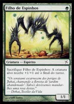 | Nome em Inglês: | Child of Thorns | | Nome em Português: | Filho de Espinhos | | Custo de Mana: |  | | Tipo: | Criatura - Espírito | | Texto: | Sacrifique Child of Thorns: A criatura alvo ganha +1/+1 até o final do turno. | | P/T: | 1/1 | | Série: |  | | Raridade: | Comum | | Card: | 123 |