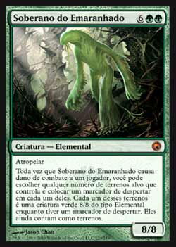 | Texto: | Atropelar. Toda vez que Liege of the Tangle causar dano de combate a um jogador, você pode escolher qualquer número de terrenos alvo que você controla e colocar um marcador de despertar em cada um deles. Cada um desses terrenos é uma criatura verde 8/8 do tipo Elemental enquanto tiver um marcador de despertar. Eles ainda são terrenos. |