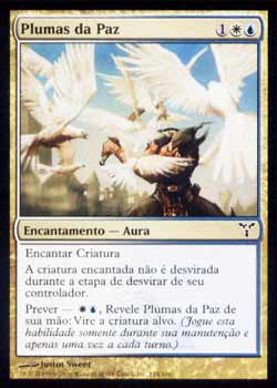 | Nome em Inglês: | Plumes of Peace | | Nome em Português: | Plumas da Paz | | Custo de Mana: |    | | Tipo: | Encantamento - Aura | | Texto: | Encantar criatura. a criatura encantada não desvira durante a Etapa de Desvirar de seu controlador. Prever -  : Vire a criatura alvo. | | Série: |  | | Raridade: | Comum | | Card: | 124 |