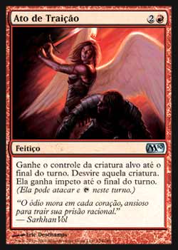 | Nome em Inglês: | Act of Treason | | Nome em Português: | Ato de Traição | | Custo de Mana: |   | | Tipo: | Feitiço | | Texto: | Ganhe o controle da criatura alvo até o final do turno. Desvire aquela criatura. Aquela criatura tem Ímpeto até o final do turno. | | Série: |  | | Outras: | | | Raridade: | Incomum | | Card: | 124 |