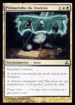 | Nome em Inglês: | Pillory of the Sleepless | | Nome em Português: | Pelourinho da Insônia | | Custo de Mana: |    | | Tipo: | Encantamento - Aura | | Texto: | Encantar criatura. A criatura encantada não pode atacar ou bloquear. A criatura encantada tem 'No início de sua Etapa de Manutenção, você perde 1 ponto de vida.' | | Série: |  | | Raridade: | Comum | | Card: | 125 |