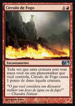 | Nome em Inglês: | Circle of Flame | | Nome em Português: | Círculo de Fogo | | Custo de Mana: |   | | Tipo: | Encantamento | | Texto: | Toda vez que uma criatura sem Voar atacar você ou um Planeswalker que você controla, Circle of Flame causa 1 ponto de dano àquela criatura. | | Série: |  | | Raridade: | Incomum | | Card: | 127 |