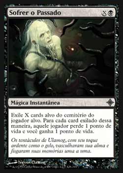 | Nome em Inglês: | Suffer the Past | | Nome em Português: | Sofrer o Passado | | Custo de Mana: |   | | Tipo: | Mágica Instantânea | | Texto: | Exile X cards alvo do cemitério do jogador alvo. Para cada card Exilado desta forma, aquele jogador perde 1 ponto de vida e você ganha 1 ponto de vida. | | Série: |  | | Raridade: | Incomum | | Card: | 128 |