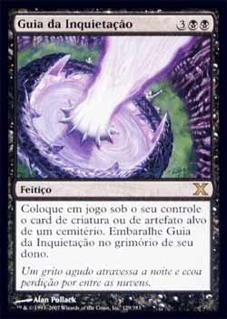 | Nome em Inglês: | Beacon of Unrest | | Nome em Português: | Guia de Inquietação | | Custo de Mana: |    | | Tipo: | Feitiço | | Texto: | Coloque o card de artefato alvo ou de criatura alvo de um cemitério no Campo de Batalha sob seu controle. Embaralhe Beacon of Unrest no grimório de seu dono. | | Série: |  | | Outras: | | | Raridade: | Raro | | Card: | 129 |
