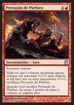 | Nome em Inglês: | Ordeal of Purphoros | | Nome em Português: | Provação de Púrforo | | Custo de Mana: |   | | Tipo: | Encantamento - Aura | | Texto: | Encantar criatura. Toda vez que a criatura encantada atacar, coloque um marcador +1/+1 nela. Então se ela tiver três ou mais marcadores +1/+1, sacrifique Ordeal of Purphoros. Quando você sacrificar Ordeal of Purphoros, ele causa 3 pontos de dano à criatura ou ao jogador alvo. | | Série: |  | | Outras: | | | Raridade: | Incomum | | Card: | 131 |
