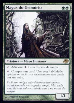 | Nome em Inglês: | Magus of the Library | | Nome em Português: | Magus do Grimório | | Custo de Mana: |   | | Tipo: | Criatura - Humano Mago | | Texto: | : Adiciona a sua reserva de mana.