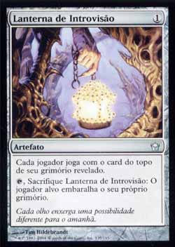 | Nome em Inglês: | Lantern of Insight | | Nome em Português: | Lanterna de Introvisão | | Custo de Mana: |  | | Tipo: | Artefato | | Texto: | Cada jogador joga com o card do topo do seu próprio grimório revelado.