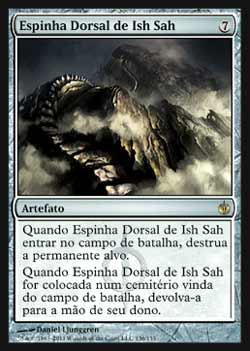 | Nome em Inglês: | Spine of Ish Sah | | Nome em Português: | Espinha Dorsal de Ish Sah | | Custo de Mana: |  | | Tipo: | Artefato | | Texto: | Quando Spine of Ish Sah entrar no Campo de Batalha, destrói a Permanente alvo. Quando Spine of Ish Sah for colocado em um cemitério vindo do Campo de Batalha, devolva Spine of Ish Sah para a mão de seu dono. | | Série: |  | | Outras: | | | Raridade: | Raro | | Card: | 136 |