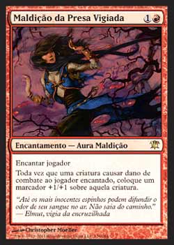 | Nome em Inglês: | Curse of Stalked Prey | | Nome em Português: | Maldição da Presa Vigiada | | Custo de Mana: |   | | Tipo: | Encantamento - Aura Maldição | | Texto: | Encantar jogador. Toda vez que uma criatura causar dano de combate ao jogador encantado, coloque um marcador +1/+1 naquela criatura. | | Série: |  | | Raridade: | Raro | | Card: | 136 |