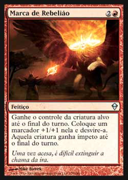 | Nome em Inglês: | Mark of Mutiny | | Nome em Português: | Marca de Rebelião | | Custo de Mana: |   | | Tipo: | Feitiço | | Texto: | Ganhe o controle de uma criatura alvo até o final do turno. Coloque um marcador +1/+1 naquela criatura e desvire-a. Aquela criatura tem Ímpeto até o final do turno. | | Série: |  | | Outras: | | | Raridade: | Incomum | | Card: | 137 |