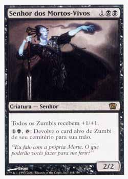 | Nome em Inglês: | Lord of the Undead | | Nome em Português: | Senhor dos Mortos-Vivos | | Custo de Mana: |    | | Tipo: | Criatura - Zumbi | | Texto: | As outras criaturas do tipo Zumbi ganham +1/+1.