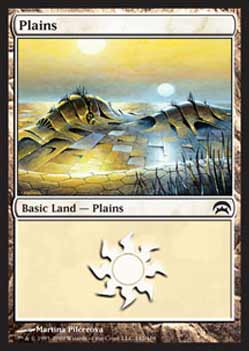 | Nome em Inglęs: | Plains | | Nome em Portuguęs: | Sem nome em Portuguęs | | Tipo: | Terreno Básico - Planície | | Texto: | : Adiciona a sua reserva de mana. | | Série: |  | | Outras: | | | Raridade: | Terreno Básico | | Card: | 142 |