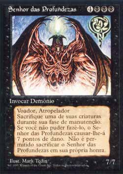 | Nome em Inglês: | Lord of the Pit | | Nome em Português: | Senhor das Profundezas | | Custo de Mana: |     | | Tipo: | Criatura - Demônio | | Texto: | Voar, Atropelar. No início de sua Etapa de Manutenção, sacrifique uma criatura que não seja Lord of the Pit. Se não o fizer, vire Lord of the Pit, e Lord of the Pit causa 7 pontos de dano a você. | | P/T: | 7/7 | | Série: |  | | Outras: | | | Raridade: | Raro | | Card: | 144 |
