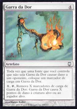 | Nome em Inglês: | Talon of Pain | | Nome em Português: | Garra da Dor | | Custo de Mana: |  | | Tipo: | Artefato | | Texto: | Toda vez que uma fonte que você controla que não seja Talon of Pain causar dano a um oponente, coloque um marcador de carga em Talon of Pain.