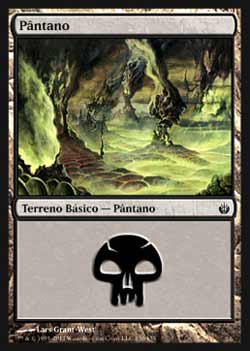 | Nome em Inglęs: | Swamp | | Nome em Portuguęs: | Pântano | | Tipo: | Terreno Básico - Pântano | | Texto: | : Adiciona a sua reserva de mana. | | Série: |  | | Outras: | | | Raridade: | Terreno Básico | | Card: | 150 |