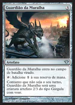 : Adiciona a sua reserva de mana. Enquanto não for seu turno, Warden of the Wall é uma criatura artefato 2/3 do tipo Gárgula com Voar. | | Série: |  | | Raridade: | Incomum | | Card: | 153 |