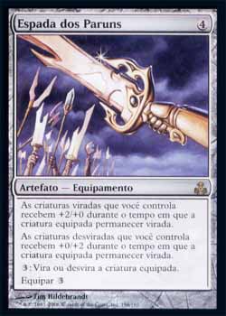 | Nome em Inglês: | Sword of the Paruns | | Nome em Português: | Espada dos Paruns | | Custo de Mana: |  | | Tipo: | Artefato - Equipamento | | Texto: | Enquanto a criatura Equipada estiver virada, criaturas viradas que você controla ganham +2/+0. Enquanto a criatura Equipada estiver desvirada, criaturas desviradas que você controla ganham +0/+2.