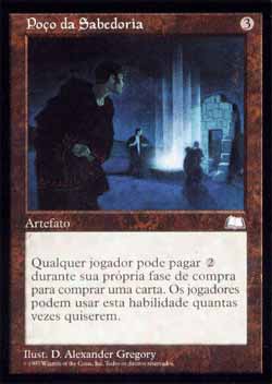 | Nome em Inglês: | Well of Knowledge | | Nome em Português: | Poço da Sabedoria | | Custo de Mana: |  | | Tipo: | Artefato | | Texto: | : Compre um card. Qualquer jogador pode Ativar esta habilidade mas apenas durante sua própria Etapa de Compra. | | Série: |  | | Raridade: | Raro | | Card: | 162 |