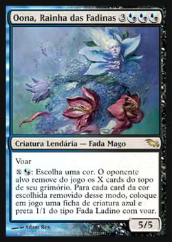 | Nome em Inglês: | Oona, Queen of the Fae | | Nome em Português: | Oona, Rainha das Fadinas | | Custo de Mana: |     | | Tipo: | Criatura Lendária - Fada Mago | | Texto: | Voar.