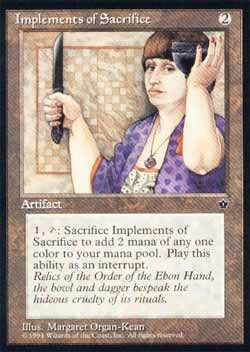, sacrifique Implements of Sacrifice: Adiciona dois manas de uma única cor a sua reserva de mana.
