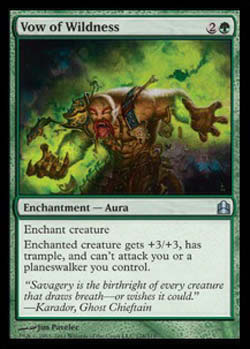 | Nome em Inglês: | Vow of Wildness | | Nome em Português: | Sem nome em Português | | Custo de Mana: |   | | Tipo: | Encantamento - Aura | | Texto: | Encantar criatura. A criatura encantada ganha +3/+3, tem Atropelar, e não pode atacar você ou um Planeswalker que você controla. | | Série: |  | | Raridade: | Incomum | | Card: | 178 |