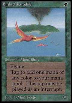 | Nome em Inglês: | Birds of Paradise | | Nome em Português: | Sem nome em Português | | Custo de Mana: |  | | Tipo: | Criatura - Ave | | Texto: | Voar.