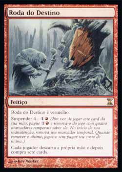 | Nome em Inglês: | Wheel of Fate | | Nome em Português: | Roda do Destino | | Tipo: | Feitiço | | Texto: | (Mágicas sem custos de mana não podem ser Conjuradas.) Wheel of Fate é vermelho. Suspender 4 -  . Cada jogador descarta sua própria mão e então compra sete cards. | | Série: |  | | Raridade: | Raro | | Card: | 187 |