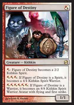 : Se Figure of Destiny for um Espírito, ele torna-se uma criatura 4/4 do tipo Kithkin Espírito Guerreiro.
