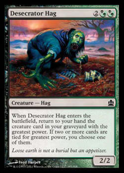 | Nome em Inglês: | Desecrator Hag | | Nome em Português: | Sem nome em Português | | Custo de Mana: |    | | Tipo: | Criatura - Bruxa | | Texto: | Quando Desecrator Hag entrar no Campo de Batalha, devolva o card de criatura com maior poder de seu cemitério para sua mão. Se dois ou mais cards estiverem empatados com o maior poder, você escolhe um deles. | | P/T: | 2/2 | | Série: |  | | Outras: | | | Raridade: | Comum | | Card: | 193 |