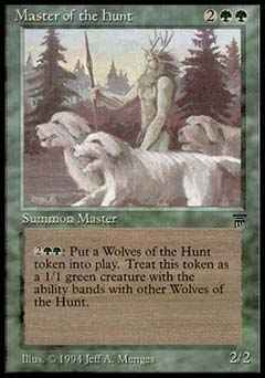 | Nome em Inglês: | Master of the Hunt | | Nome em Português: | Sem nome em Português | | Custo de Mana: |    | | Tipo: | Criatura - Humano | | Texto: |   : Coloque no Campo de Batalha uma ficha de criatura verde 1/1 do tipo Lobo e nome Wolves of the Hunt. Aquela criatura tem 'Formar Bando com outros Lobos'. | | P/T: | 2/2 | | Série: |  | | Raridade: | Raro | | Card: | 194 |