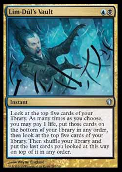 Texto:Olhe os cinco cards do topo de seu grimório. Quantas vezes você quiser, você pode pagar 1 ponto de vida, colocar aqueles cards no fundo de seu grimório e olhar os próximos cinco cards de seu grimório. Então retire os cinco cards do topo de seu grimório, embaralhe-o, e coloque aqueles cinco cards de volta em qualquer ordem.