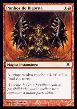 | Nome em Inglês: | Fists of the Anvil | | Nome em Português: | Punhos de Bigorna | | Custo de Mana: |   | | Tipo: | Mágica Instantânea | | Texto: | A criatura alvo ganha +4/+0 até o final do turno. | | Série: |  | | Outras: | | | Raridade: | Comum | | Card: | 201 |