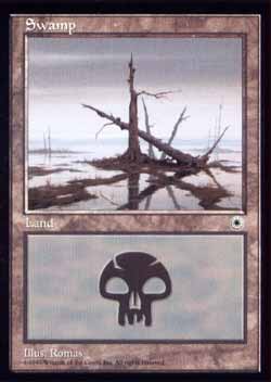 | Nome em Inglęs: | Swamp | | Nome em Portuguęs: | Sem nome em Portuguęs | | Tipo: | Terreno Básico - Pântano | | Texto: | : Adiciona a sua reserva de mana. | | Série: |  | | Outras: | | | Raridade: | Terreno Básico | | Card: | 205 |