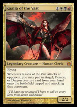| Nome em Inglês: | Kaalia of the Vast | | Nome em Português: | Sem nome em Português | | Custo de Mana: |     | | Tipo: | Criatura Lendária - Humano Clérigo | | Texto: | Voar. Toda vez que Kaalia of the Vast atacar um oponente, você pode colocar um card de criatura do tipo Anjo, Demônio, ou Dragão de sua mão no Campo de Batalha virado e atacando aquele oponente. | | P/T: | 2/2 | | Série: |  | | Outras: | | | Raridade: | Mítico Raro | | Card: | 206 |