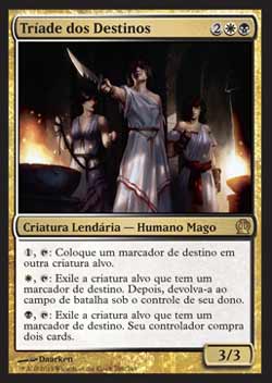 | Nome em Inglês: | Triad of Fates | | Nome em Português: | Tríade dos Destinos | | Custo de Mana: |    | | Tipo: | Criatura Lendária - Humano Mago | | Texto: | , : Coloque um marcador de destino em outra criatura alvo.