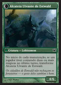 | Nome em Inglês: | Howlpack of Estwald | | Nome em Português: | Alcateia Uivante de Estwald | | Tipo: | Criatura - Lobisomem | | Texto: | No início de cada Etapa de Manutenção, se um jogador tiver Conjurado duas ou mais mágicas no último turno, Transforme Howlpack of Estwald. | | P/T: | 4/6 | | Série: |  | | Raridade: | Comum | | Card: | 209b |