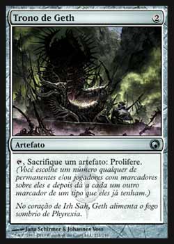 | Nome em Inglês: | Throne of Geth | | Nome em Português: | Trono de Geth | | Custo de Mana: |  | | Tipo: | Artefato | | Texto: | , sacrifique um artefato: Prolifere. | | Série: |  | | Raridade: | Incomum | | Card: | 211 |