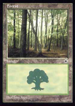 | Nome em Inglęs: | Forest | | Nome em Portuguęs: | Sem nome em Portuguęs | | Tipo: | Terreno Básico - Floresta | | Texto: | : Adiciona a sua reserva de mana. | | Série: |  | | Outras: | | | Raridade: | Terreno Básico | | Card: | 214 |