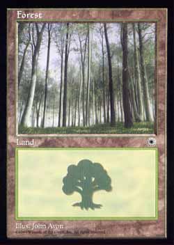 | Nome em Inglęs: | Forest | | Nome em Portuguęs: | Sem nome em Portuguęs | | Tipo: | Terreno Básico - Floresta | | Texto: | : Adiciona a sua reserva de mana. | | Série: |  | | Outras: | | | Raridade: | Terreno Básico | | Card: | 215 |