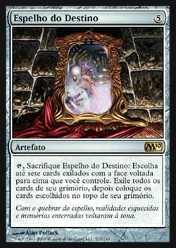 | Nome em Inglês: | Mirror of Fate | | Nome em Português: | Espelho do Destino | | Custo de Mana: |  | | Tipo: | Artefato | | Texto: | , sacrifique Mirror of Fate: Escolha até sete cards Exilados com a face para cima que você possua. Exile todos os cards de seu grimório e então coloque os cards escolhidos no topo de seu grimório. | | Série: |  | | Raridade: | Raro | | Card: | 215 |